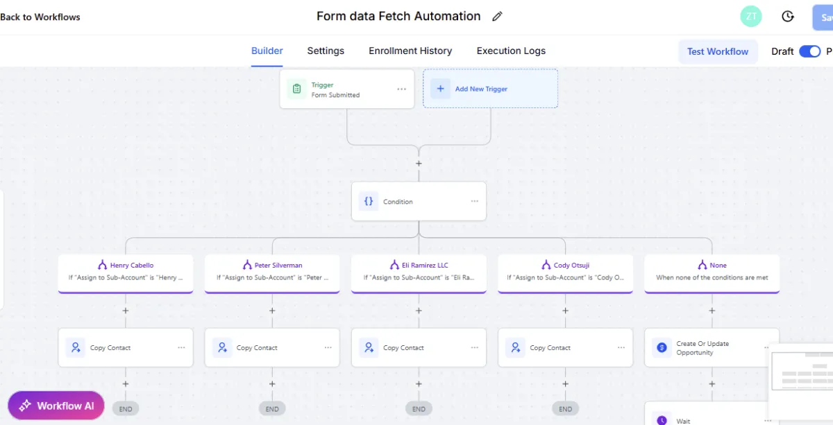 We implemented a fully automated, AI-driven system that captures, processes, and distributes leads without human intervention. An AI voice agent ensures every call is answered, while the CRM automates lead handling, pricing, contracts, and contractor assignments.